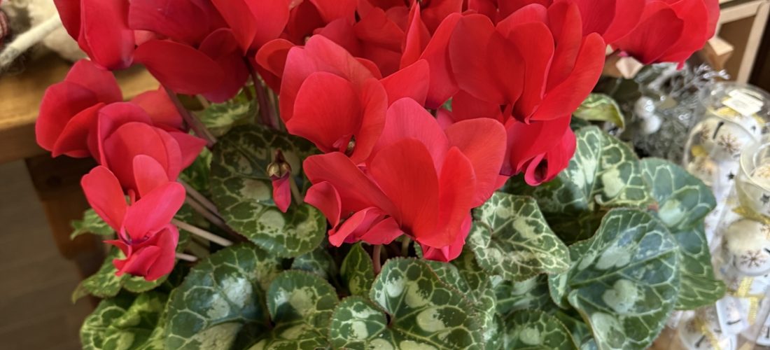 シクラメンはふんわりと反り返る花びらと、ハート形の葉が可愛らしい冬の定番のお花です赤・ピンク・白・紫などカラーも豊富で、ギフトにもよく選ばれます。